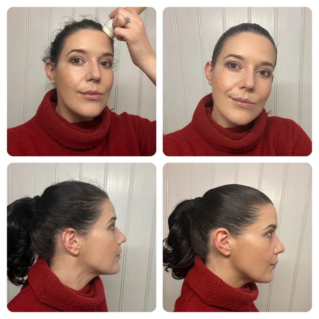 With hair tied back, run the stick backwards from your face to smooth flyaways and frizz for a sleek finish.